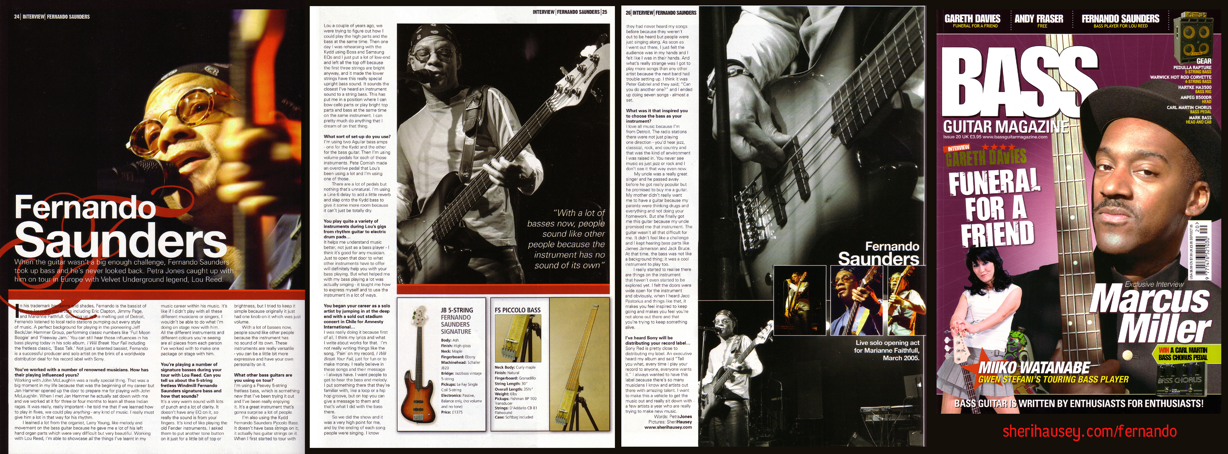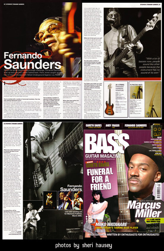 ![]() FERNANDO SAUNDERS VOCALS & GUITAR & BASS The Paradise - Boston March 11, 2005 opening solo act for MARIANNE FAITHFULL PHOTOS by SHERI HAUSEY He is the long-time bassist with LOU REED and was a key member in Jeff Beck/Jan Hammer Group as well as a highly sought after studio and touring musician. Be sure to visit his site to hear more. ![]() ![]() ![]() ![]() ![]() ![]() ![]() ![]() ![]() ![]() ![]() ![]() click to see large (6 meg) readable version of article. be sure to check out: MARIANNE FAITHFULL PHOTOS FernandoSaunders.com SHERI HAUSEY writer - photographer - latin teacher mission of burma | consonant einsturzende neubauten | circuit bent festival holger czukay | mel the cat dresden dolls | sunburned hand of the man marianne faithfull | pj harvey orgy of noise | website design by bill t miller back to main page at: SHERIHAUSEY.com